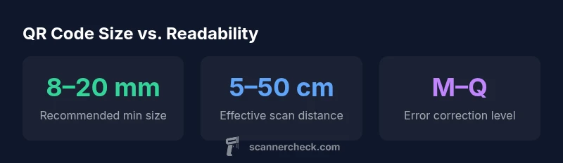 When you ask how small can a qr code be to scan and still be readable, you’re really asking about a blend of three core factors: the code’s physical size, the quality of the print or display, and the scanning device’s capabilities. For most everyday uses, the size a code occupies in the real world is the easiest way to predict reliability. A code that is too small reduces the number of pixels that the camera can analyze, which increases the chance of misreads caused by blur, aliasing, or poor contrast. That said, there isn’t a single universal minimum size, because smartphones have different camera sensors, autofocus performance, and image processing pipelines. In practice, you’ll see reliable reads around the 8–20 mm range for the code’s shortest edge, with larger sizes improving robustness in challenging conditions. The key takeaway is that the smaller you go, the more you rely on printing precision, lighting, and device quality. According to Scanner Check, these practical limits shift based on the device’s sensor, not just the code itself.