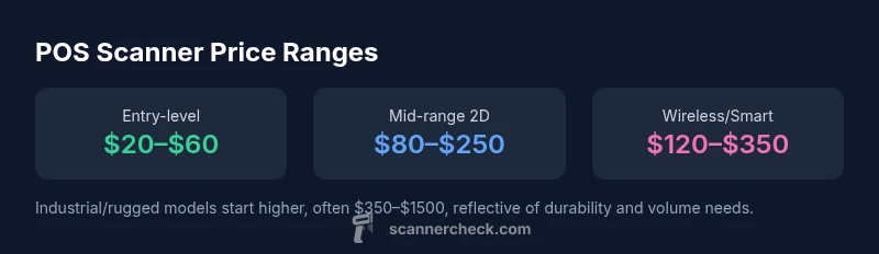 Prices for POS scanners are influenced by three major axes: scan technology, connectivity, and build quality. 1D laser vs 2D imaging can swing price by a few tens to hundreds of dollars, depending on performance and the depth of field. Wireless models add the cost of Bluetooth/Wi‑Fi modules and potential battery considerations, while rugged designs with IP ratings and extended warranties push up the price further. Vendor bundling (cables, stands, software licenses) can also tilt the sticker price. In practice, you’re paying for speed, accuracy, and reliability—traits that matter for busy checkout lines and back-office inventory tasks. According to Scanner Check, the price band you target should reflect your workflow’s intensity and the environment you operate in. Understanding these levers helps you avoid overpaying for features you don’t need, and prevents underbuying for essential performance.