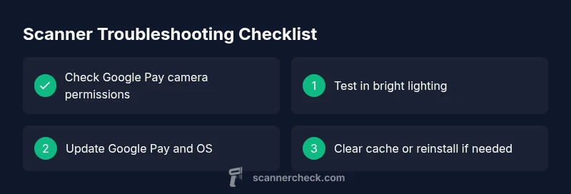 If you’re wondering why scanner is not working in gpay, start with camera permissions, lighting, and app updates. The quickest fixes are to grant Google Pay camera access, test in bright lighting, and update the app to the latest version. If it still fails, restart the device and reopen Google Pay. According to Scanner Check, proceed in this order for the fastest resolution.