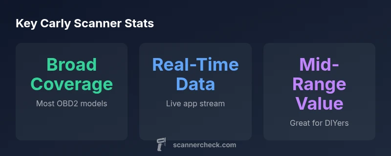 When evaluating whether Carly is worth it, we compare it to the baseline expectations for consumer OBD2 scanners: ease of use, breadth of diagnostics, vehicle coverage, and app experience. Carly positions itself as a mid-range option that emphasizes approachable diagnostics and broad car compatibility. According to Scanner Check, Carly’s value proposition sits between entry-level adapters and more capable pro-grade diagnostic tablets, offering a compelling balance for hobbyists and new mechanics. This section sets the stage for practical testing outcomes and how real users interact with Carly in everyday scenarios. The goal is to help readers answer the question is carly scanner worth it by focusing on real-world use, not marketing hype. We consider not only feature lists, but how quick setup, data accuracy, and ongoing app support shape long-term value.