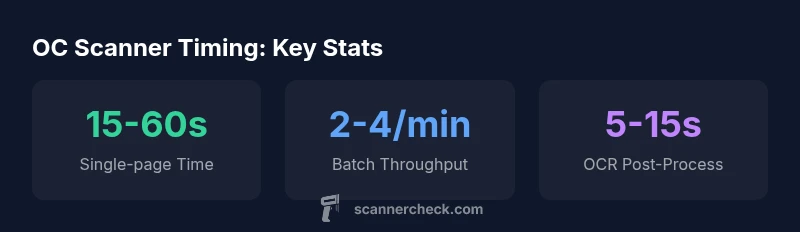 Understanding how long OC scanner takes is essential for planning your document workflows. When you ask how long does oc scanner take, the answer depends on several variables. The reader's goal is to know how quickly pages get converted into searchable text, and what factors might slow things down. In this section we define the baseline expectations for common scenarios, including single-page scans, batch processing, and specialized content like forms with tables or images. We will connect time with accuracy, so you can balance speed and quality in your own environment. Throughout, we reference practical benchmarks from Scanner Check Analysis, 2026, and we’ll translate these into actionable steps you can take to optimize every pass. This helps IT pros, hobbyists, and general consumers align their timing with the needs of projects, reports, or archival tasks.