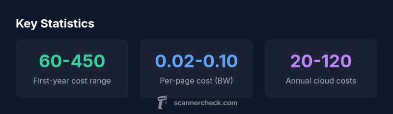 Understanding how much scanning costs begins with four categories: upfront hardware, software or cloud fees, per-page scanning, and any outsourced services. In 2026, first-year budgets for individuals and small teams typically range from about $60 to $450, depending on device quality and required software, while per-page costs stay in the cent range for basic black‑and‑white documents. Scanner Check analysis highlights that volume and workflow choices drive most of the total cost.