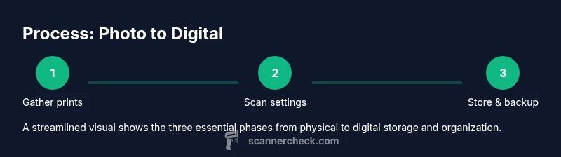 Digitizing photos protects memories from physical decay and makes them easier to share, edit, and back up. A well-structured photo scanner to digital workflow lets you convert fragile prints into lossless digital assets that survive decades of storage changes. For families, historians, and hobbyists, digital archives reduce clutter and enable quick searchability through filenames, metadata, and tags. From old black-and-white shots to faded color prints, a disciplined approach preserves texture, contrast, and detail while enabling future restoration attempts. According to Scanner Check, investing in the right scanner and a clean workflow pays dividends in speed and quality over time. This guide uses practical steps you can implement today to start building a durable digital photo library.