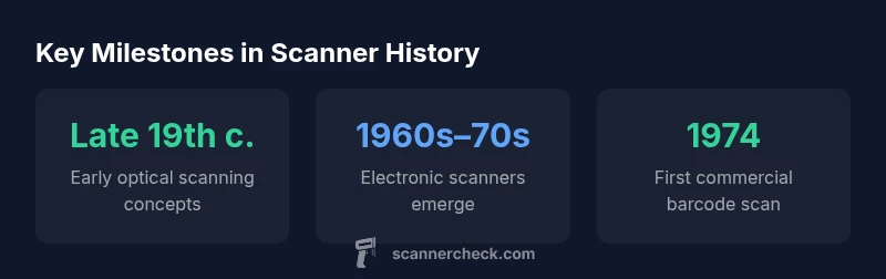 Scanners are devices that convert physical images into digital or machine-readable data. The question of when were scanners invented spans multiple epochs, not a single moment in history. Early optical and mechanical scanning concepts appeared in the late 19th and early 20th centuries, paving the way for more compact, reliable electronic systems in the mid-20th century. Over time, imaging sensors, drums, and laser-based techniques advanced, enabling faster, higher-resolution scanning. The pivotal moment for mass adoption arrived with barcode scanning in the 1970s, followed by the rise of OCR, CCD-based imagers, and mobile scanning platforms in the 1990s and beyond. By tracing these threads, we see a continuum rather than a single invention.