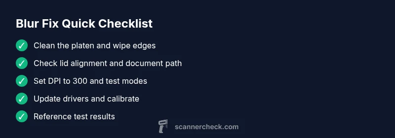 If you’ve just scanned a document and the result looks fuzzy, you’re not alone. The question often asked by users is why is my scanner blurry? Many blur cases stem from surface contamination, misalignment, or misconfigured settings. According to Scanner Check, the majority of blur issues are solvable with a few quick checks. Start by inspecting the glass surface, lid alignment, and target document quality. A clean start often fixes most scans. This is especially urgent for professionals who rely on precise text capture and image fidelity for archiving. By addressing the easiest factors first, you can often restore sharpness within minutes rather than hours. Remember: your setup matters as much as the document you’re scanning.