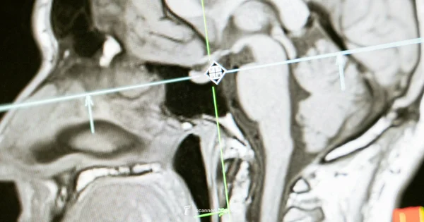 An MRI brain scan uses magnets and radio waves to produce detailed pictures of the brain, helping doctors evaluate structure and detect issues without radiation.