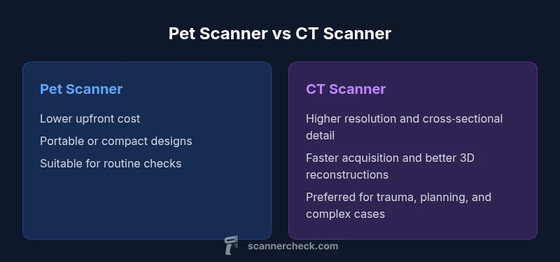 Explore differences between pet scanners and CT scanners for veterinary imaging. Learn when to use each, capabilities, radiation considerations, and practical guidance from Scanner Check.