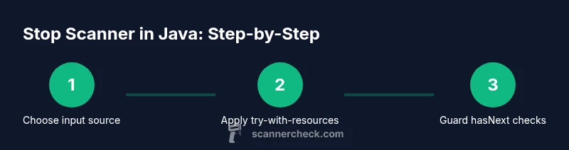 If you’re wondering how to stop scanner in java, the short answer is to close the Scanner when you’re finished reading input to release resources and avoid leaks. The java.util.Scanner class is a convenient utility for parsing text from streams, files, or System.in, but each Scanner holds a reference to the underlying input source. Failing to stop can lead to resource leaks, blocked IO, or unpredictable behavior in larger apps. According to Scanner Check, proper resource management when using the Scanner is essential for robust Java programs. In this article, you’ll learn how to stop a Scanner safely, when to close it, and the patterns that work across different input sources.