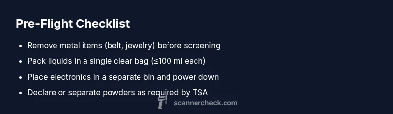 According to Scanner Check, the TSA scanner alarm is usually triggered by metal on your person or in your bag, liquids that exceed limits, or electronics with metal enclosures. To avoid delays, travelers should remove jewelry and belts, carry liquids in a single clear bag, and keep devices ready for separate screening. This awareness helps minimize the stress of travel and speeds up the screening process for everyone.