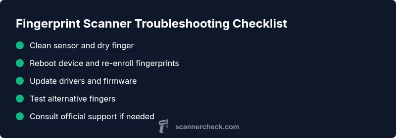 - Update software and re-enroll fingerprints if needed.