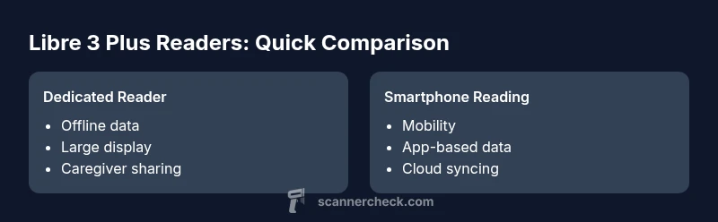An analytical side-by-side guide comparing dedicated Libre 3 Plus readers vs smartphone reading, including features, privacy, reliability, and value for tech users and caregivers.
