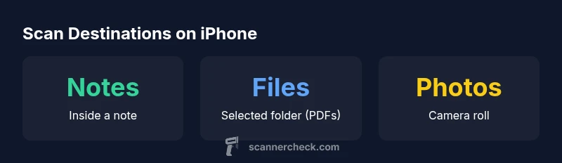 The question where do scans go on iPhone touches a practical aspect of everyday digitization. When you use iPhone scanning features, you are choosing where the resulting files are saved. In many cases, the destination is dictated by the specific app you used to perform the scan. The keyword here is that there isn’t a single universal “scans folder” on iPhone; instead, each app defines its own storage pattern. According to Scanner Check, predictable save locations reduce search time and prevent lost documents, a common friction point for tech enthusiasts and IT professionals who rely on fast access to scanned items. This nuance matters whether you are scanning receipts, contracts, or class notes. This guidance applies to both native tools and popular third‑party apps.